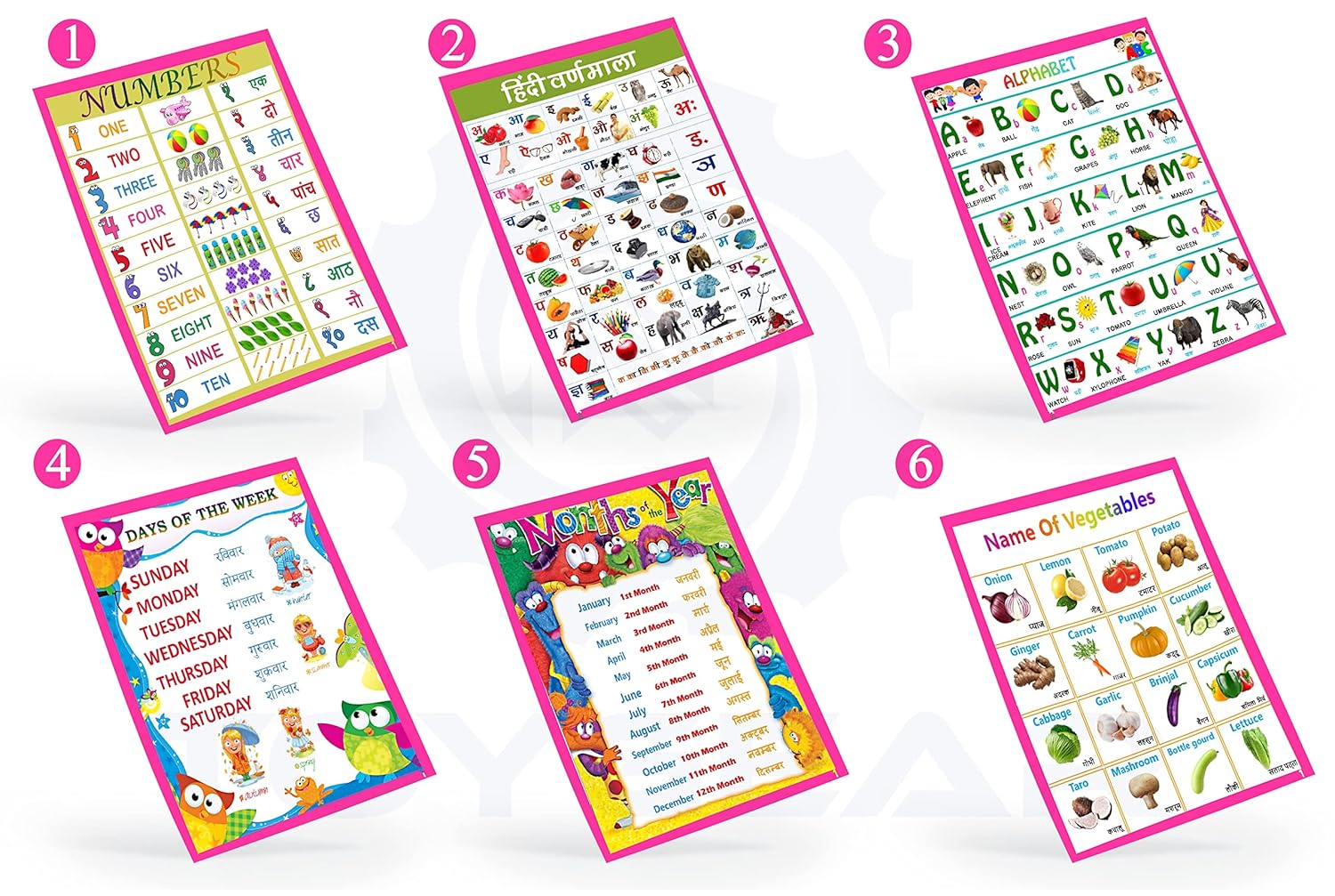 - Benefits:The Easy and Fun Way for Kids to Learn Hindi,English,Gujrati Alphabets,Numbers,Names of Animals,Birds,Fruits,Vegetables,Colours,Days,Months and More